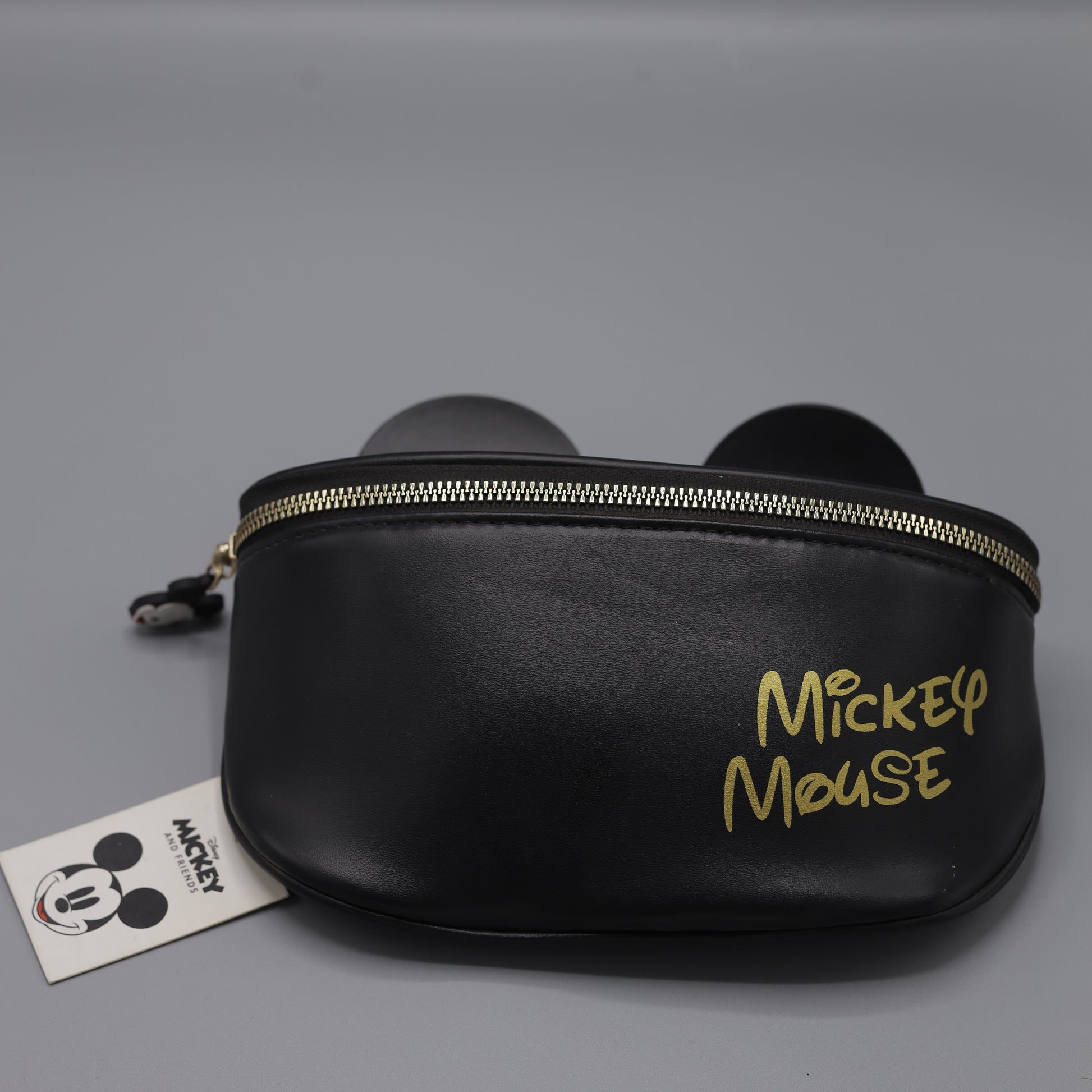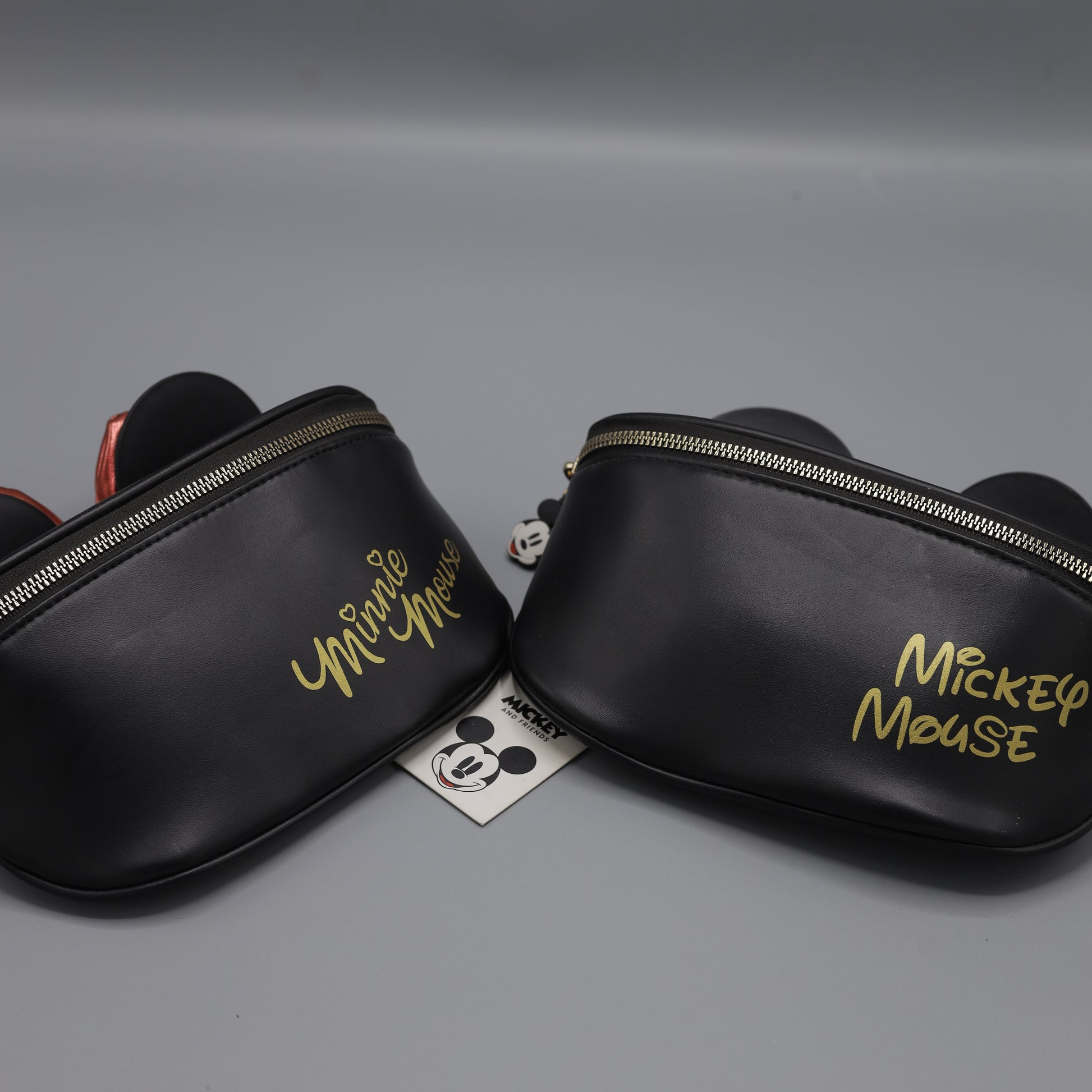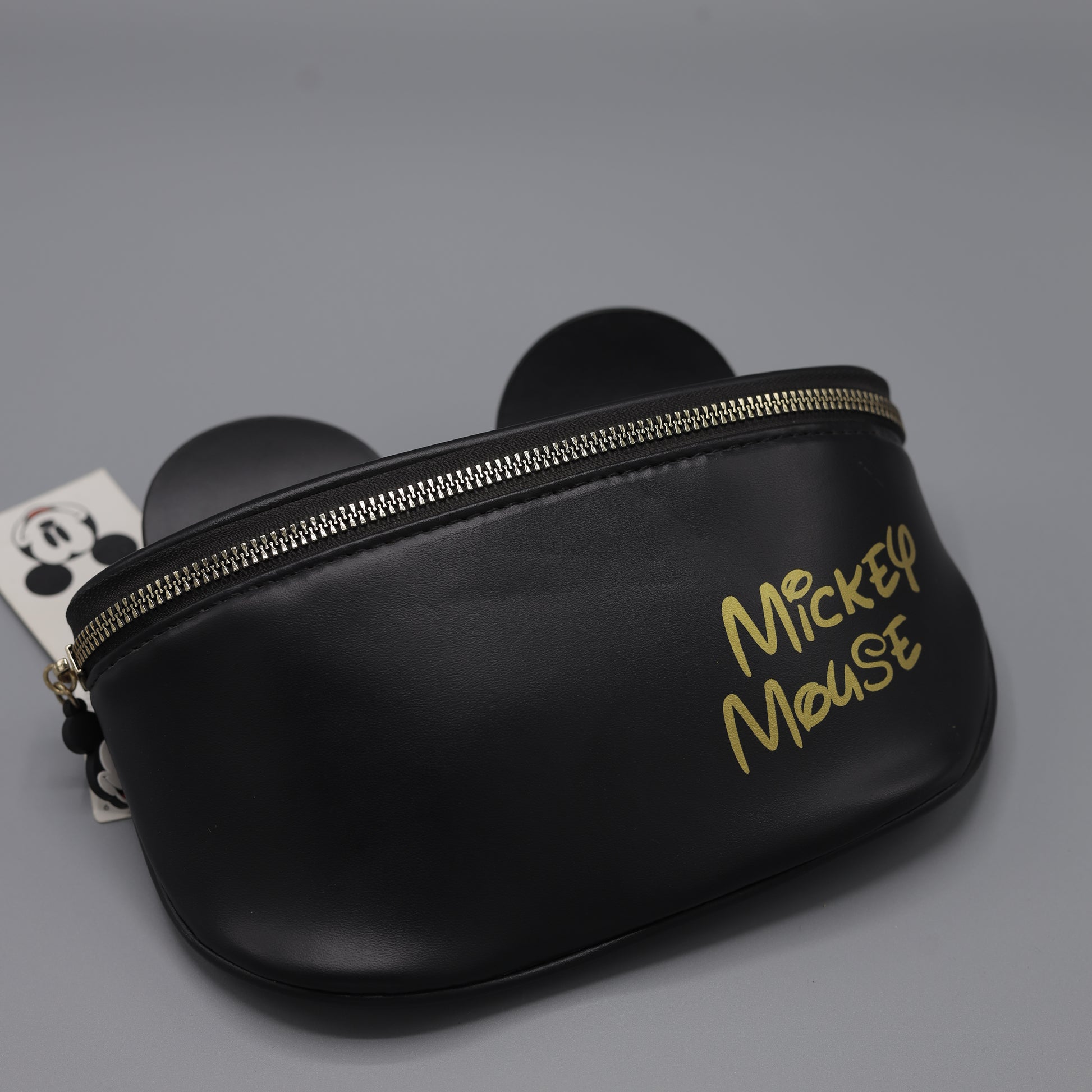 Carry your essentials with a touch of Disney magic in this adorable Mickey Mouse Ears Fanny Pack! Perfect for theme park visits, daily errands, or adding a playful accent to your outfit, this black fanny pack features iconic Mickey ears and bold "Mickey Mouse" lettering in a vibrant yellow. With a secure zip closure, it keeps your belongings safe while you enjoy hands-free convenience.