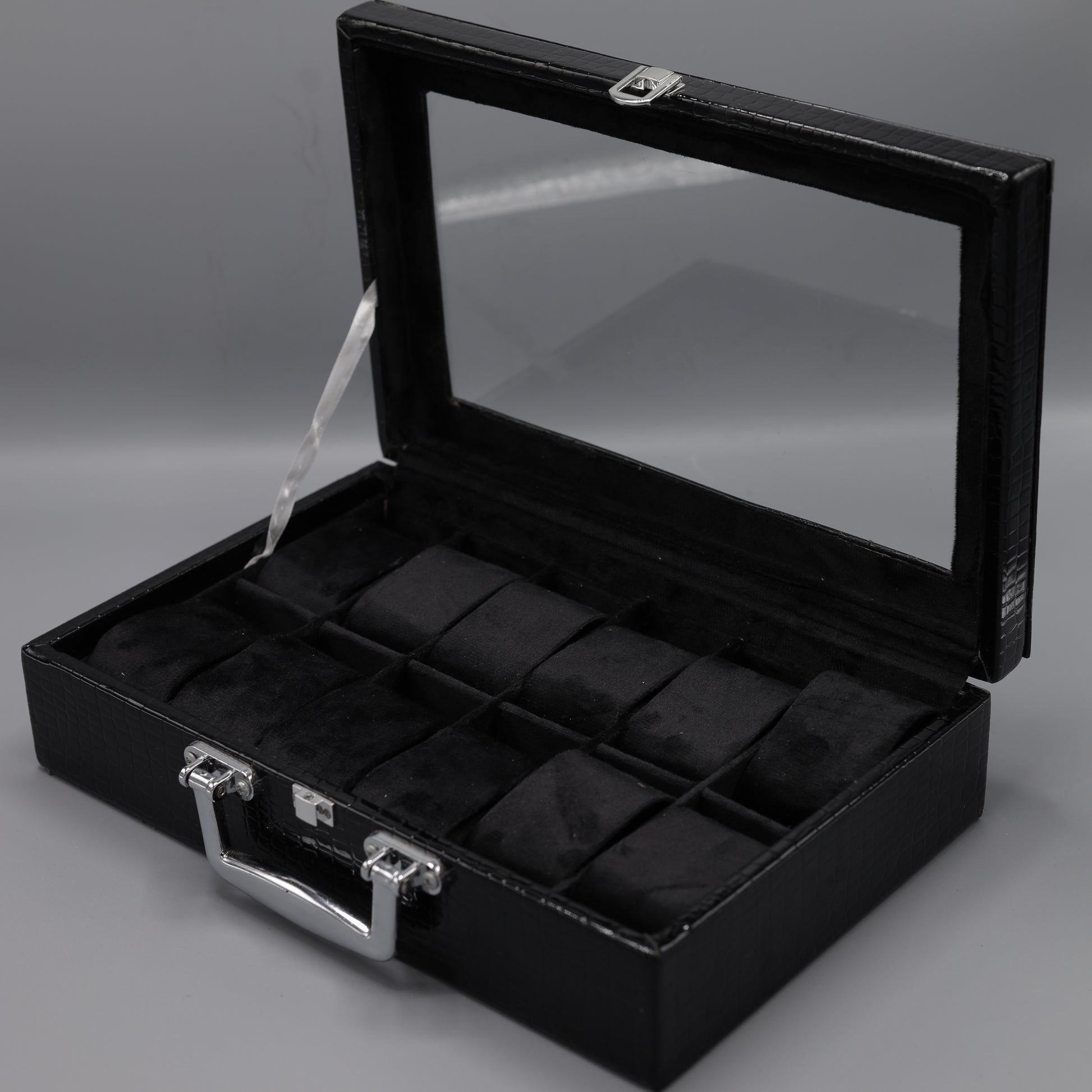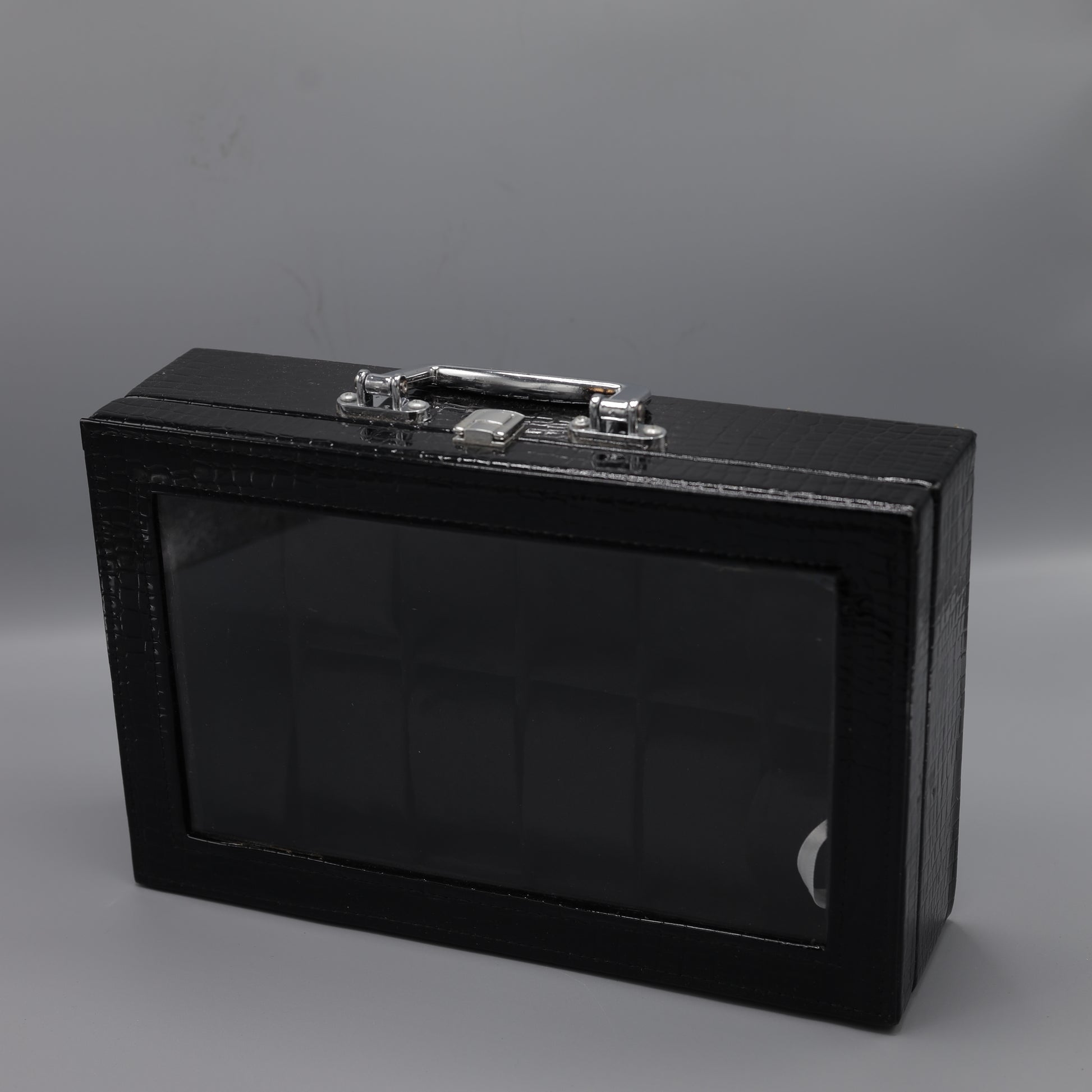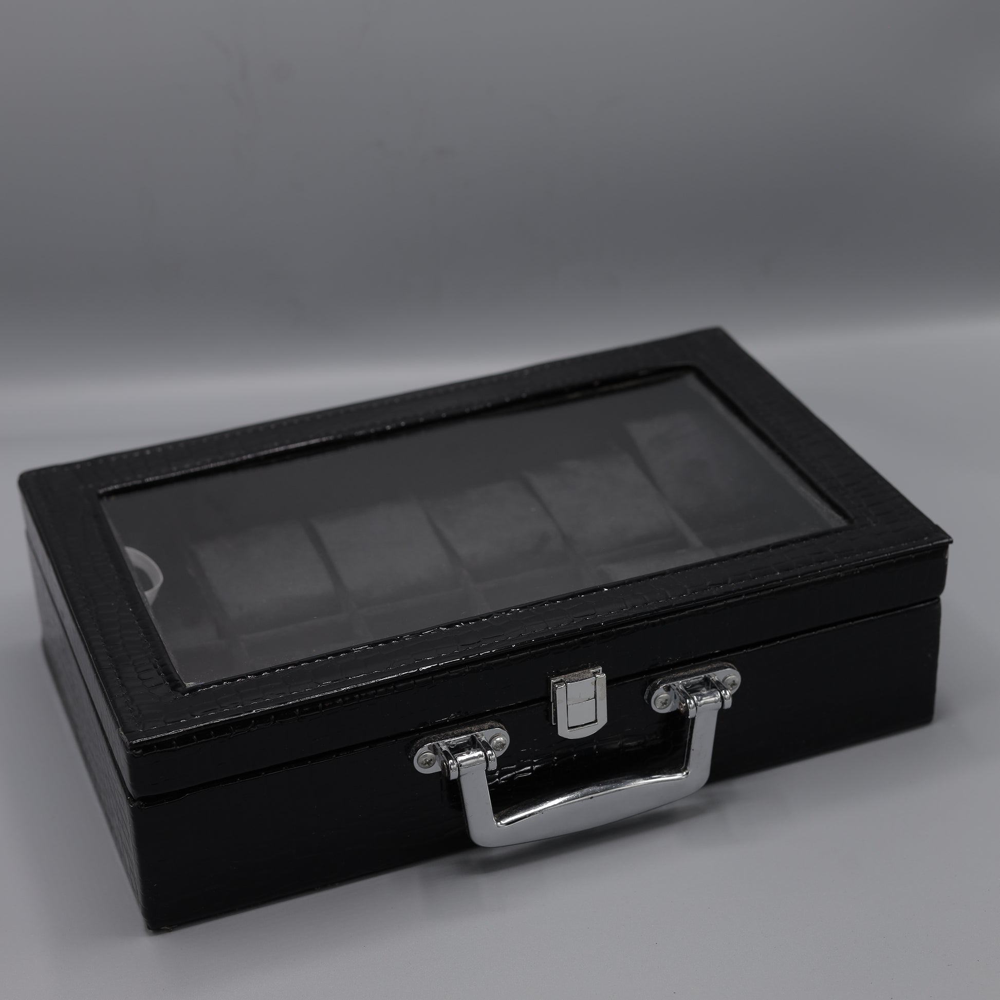 Keep your precious jewelry and watches organized, safe, and beautifully displayed with this elegant black jewelry organizer. The sleek design and high-quality materials make it a perfect addition to any dresser or countertop, offering a sophisticated way to store your accessories.