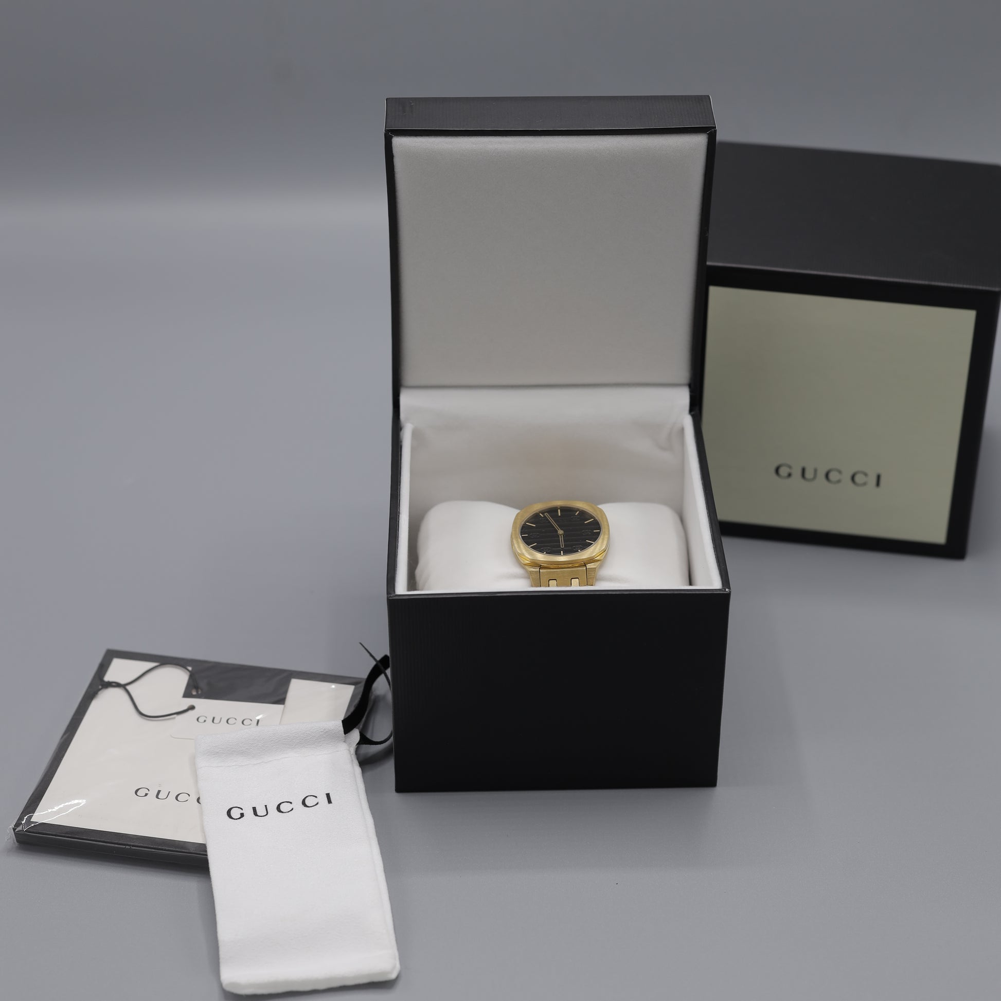 Gucci Gold-Tone Watch with Black Dial