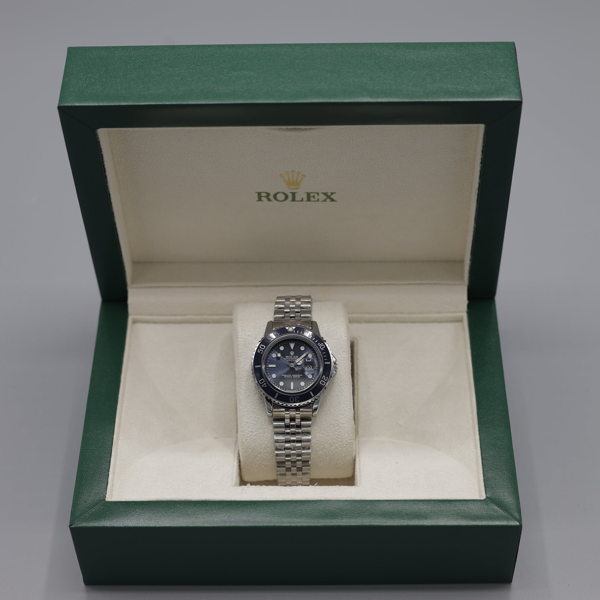 Dive into timeless elegance with this exquisite Rolex Submariner-inspired automatic watch. Crafted with a robust stainless steel case and a classic Jubilee-style bracelet, this timepiece offers a sophisticated look and reliable performance. The striking black dial features luminous hour markers and hands, ensuring clear readability in all conditions, while the iconic cyclops lens magnifies the date display at 3 o'clock. The unidirectional rotating bezel, marked with a 60-minute scale, adds a functional touch for timing dives or other activities. Powered by a precise automatic movement, this watch embodies classic design and practical features, making it an ideal choice for both everyday wear and special occasions